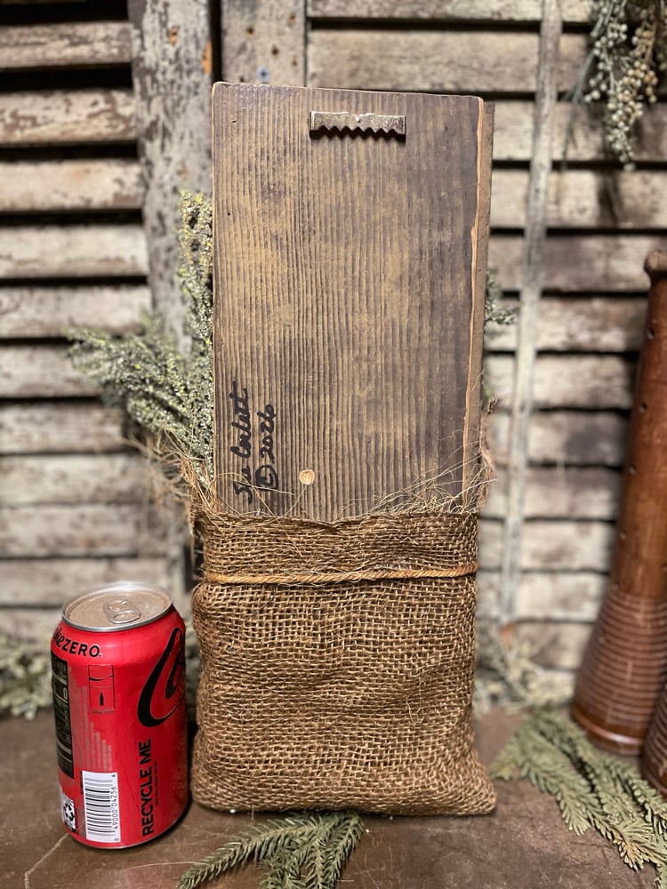 Olde Miss Tilly was made to hang and measures 6 1/2 inches wide and 15 inches tall.